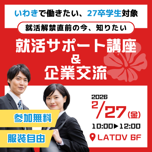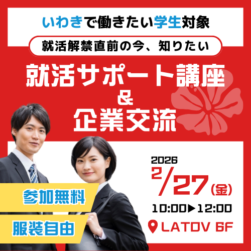 いわきで働く|就活解禁直前!「就活サポート講座&企業交流」|2/27(土)