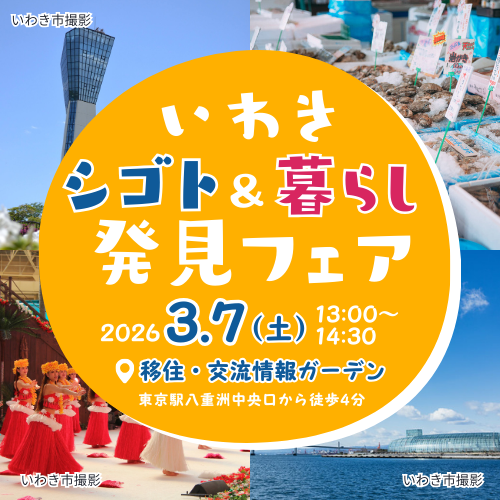 いわきシゴト&暮らし発見フェア|東京開催|3/7(土)|参加無料|服装自由|入退出自由
