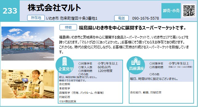 | 233 | 株式会社マルト | 卸売・小売 | 〇 | 〇 | いわき | 4/21 |