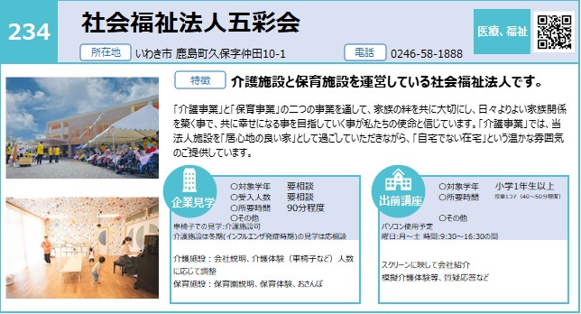 | 234 | 社会福祉法人五彩会 | 医療福祉 | 〇 | 〇 | いわき | 4/21 |
