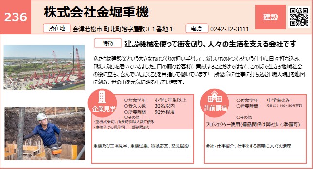 | 236 | 株式会社金堀重機 | 建設 | 〇 | 〇 | 会津 | 4/21 |