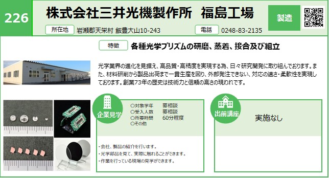 | 226 | (株)三井光機製作所 福島工場 | 製造 | 〇 | 県中 | R7.12/18 | |