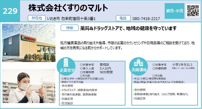 | 229 | 株式会社くすりのマルト | 卸売・小売 | 〇 | 〇 | いわき | 4/20 |