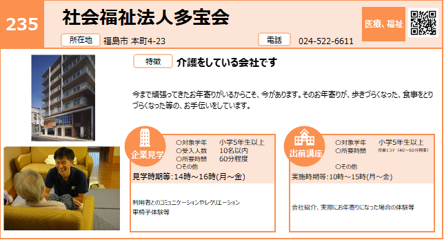 | 235 | 社会福祉法人多宝会 | 医療福祉 | 〇 | 〇 | 県北 | 4/21 |