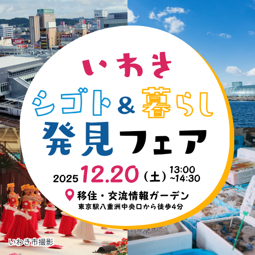 いわきシゴト&暮らし発見フェア|東京開催|12/20(土)|参加無料|服装自由|入退出自由