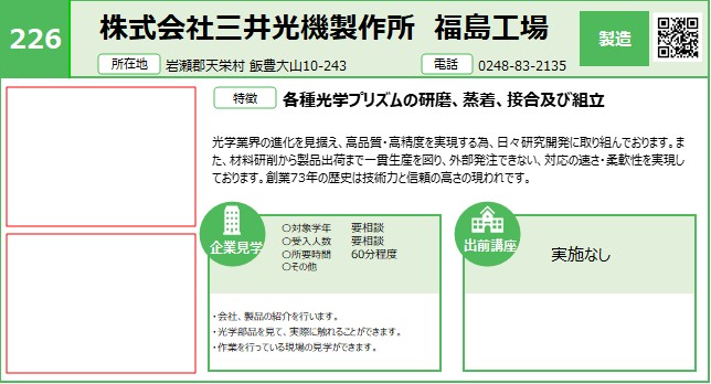 | 226 | (株)三井光機製作所 福島工場 | 製造 | 〇 | 県中 | R7.12/18 | |